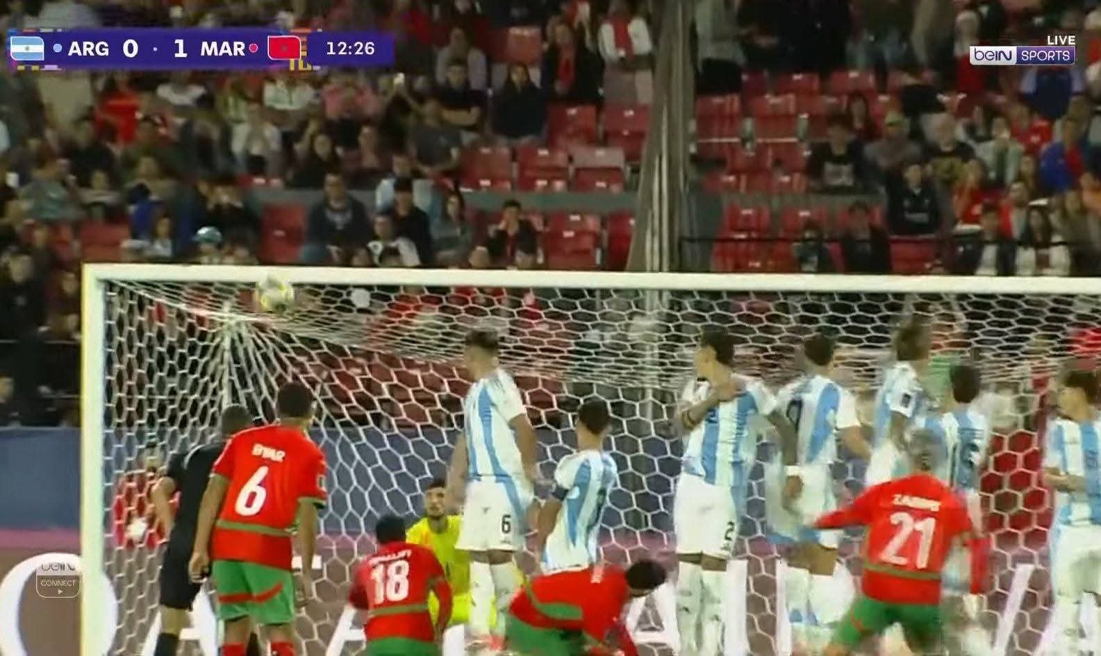 أحرز اللاعب يسير محمد الزبيري، الهدف الأول لأسود الأطلسي، حيث استغل ركلة حرة نفذها ببراعة ليضع الكرة في شباك الحارس الأرجنتيني، محققًا تقدمًا مبكرًا للمغرب في نهائي مونديال الشباب تحت 20 عاما.
