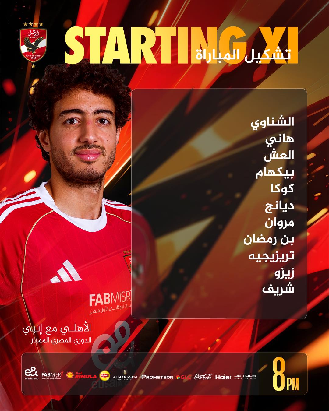 وضم تشكيل الأهلي في مواجهة إنبي جاء كالتالي: