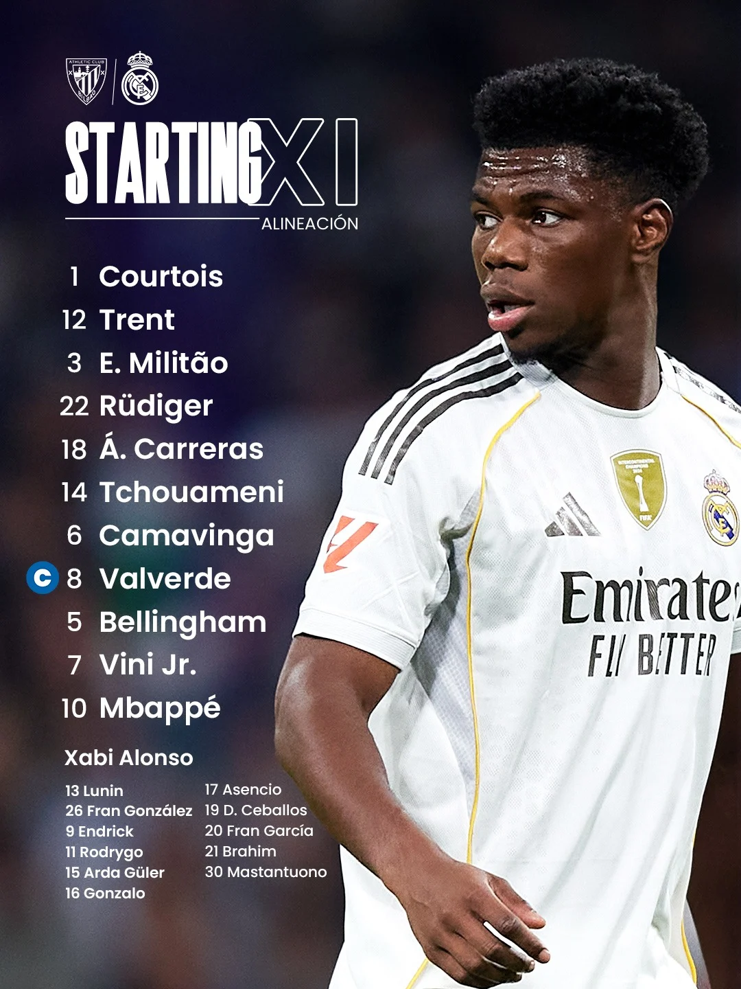 - خط الوسط: أوريلين تشواميني- إدواردو كامافينجا- جود بيلينجهام- فيديريكو فالفيردي.