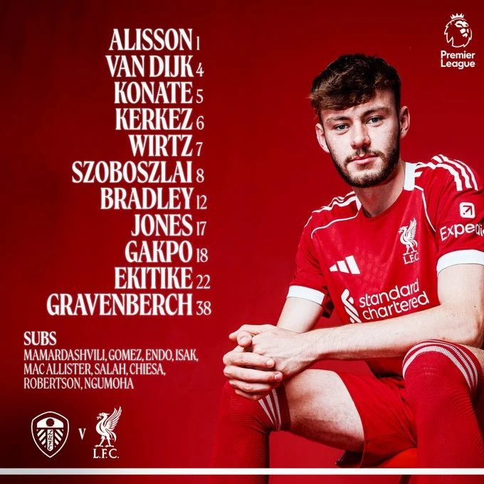 تشكيل ليفربول، أعلن الهولندي آرني سلوت، المدير الفني لنادي ليفربول، عن التشكيل الرسمي لفريقه استعدادًا للمباراة المرتقبة أمام ليدز يونايتد، المقرر انطلاقها في السابعة والنصف مساء اليوم السبت على ملعب “إيلاند رود”، ضمن منافسات الأسبوع الخامس عشر من الدوري الإنجليزي الممتاز لموسم 2025-2026.