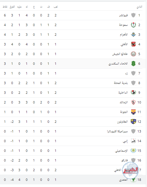 وإليكم خلال الجدول التالي، ترتيب الدوري المصري بعد إنتهاء مباريات اليوم الثلاثاء 26-9-2023.