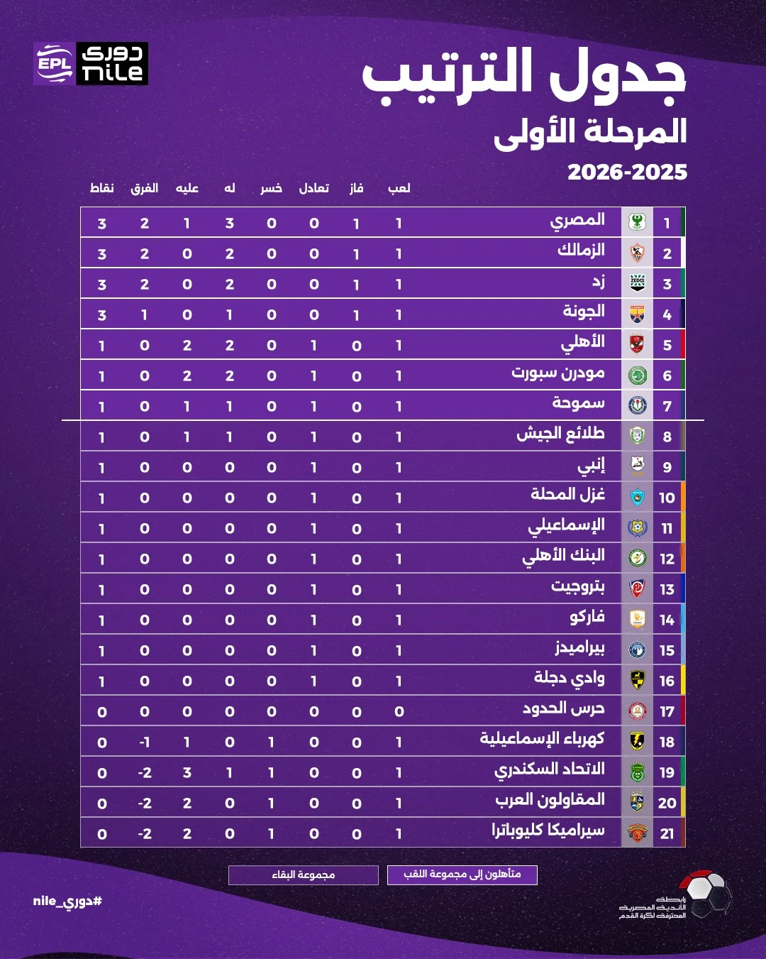 جدول ترتيب الدوري المصري لموسم 2025-2026