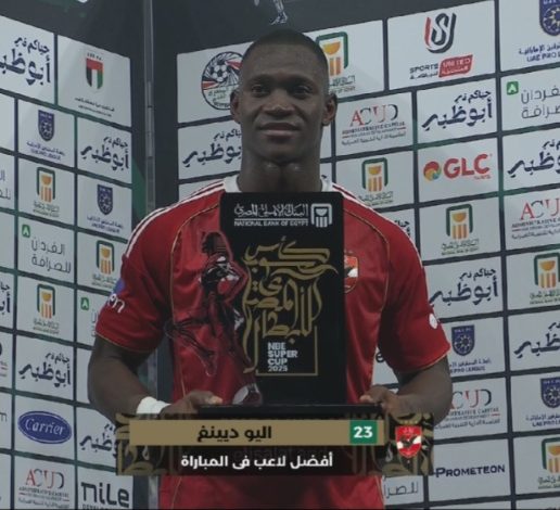حصد المالي آليو ديانج لاعب وسط الأهلي ، جائزة أفضل لاعب في مباراة سيراميكا التي أقيمت مساء اليوم ،الخميس، ضمن منافسات نصف نهائي بطولة كأس السوبر المصري التي فاز فيها الأهلي بهدفين لهدف.