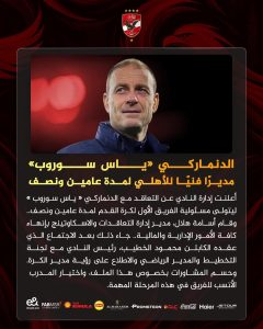 رسمياً.. الأهلي يتعاقد مع الدنماركي “ياس سوروب” مديرًا فنيًا للفريق الأول لمدة عامين ونصف