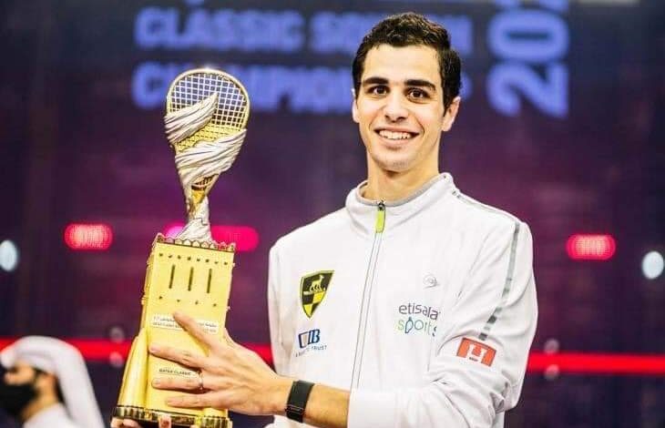 علي فرج يحتفظ بصدارة التصنيف العالمي للاسكواش للأسبوع الـ52 على التوالي