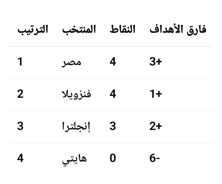 وفي حال الخسارة أمام إنجلترا، فإن فرص الفراعنة تظل قائمة بقوة، إذ يتأهل أيضًا أفضل 8 منتخبات تحتل المركز الثالث من بين 12 مجموعة، ما يعني أن رصيد مصر الحالي (4 نقاط) يكفي بنسبة كبيرة لضمان الصعود إلى الدور التالي.