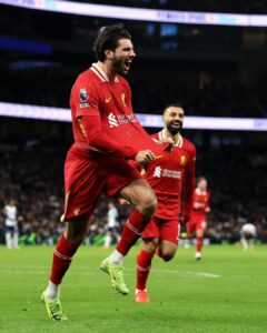 انتهى الشوط الأول بتقدم ليفربول بنتيجة 3-1 بحيث افتتح لويس دياز التسجيل في الدقيقة الـ23 وسجل أليكسيس ماك اليستير الهدف الثاني في الدقيقة الـ36 وقلص جيمس ماديسون الفارق لأصحاب الأرض في الدقيقة الـ41 قبل أن يسجل دومينيك سوبوسلاي هدف “الريدز” الثالث في الدقيقة الأولى من الوقت بدلا من الضائع بتمريرة حاسمة من صلاح..لينتهى الشوط الأول بتقدم ليفربول بنتيجة 3-1 .