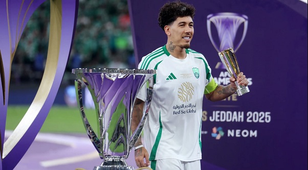 واصل المهاجم البرازيلي روبرتو فيرمينو تألقه اللافت مع فريقه أهلي جدة، بعدما حصل على جائزة أفضل لاعب في بطولة دوري أبطال آسيا للنخبة، عقب مساهمته الكبيرة في التتويج التاريخي للفريق السعودي باللقب القاري الأول في تاريخه.