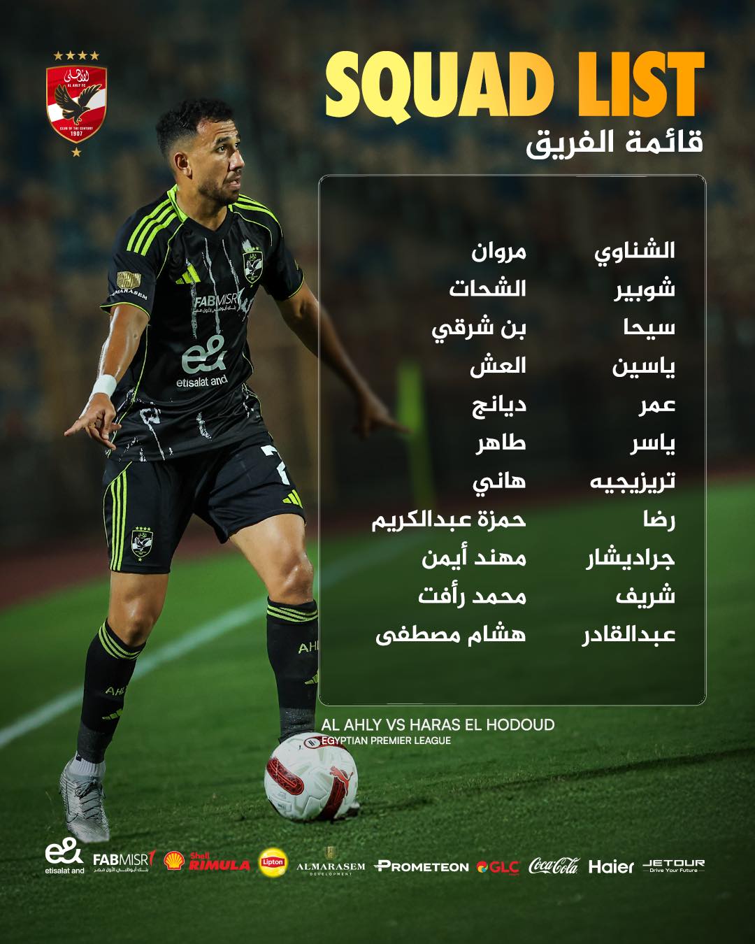 قائمة الأهلي لمواجهة حرس الحدود في الدوري