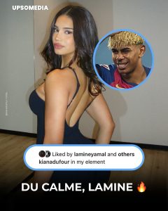 في تطور آخر، أثار لامين جمال جدلا واسعا بعدما أبدى إعجابه عبر مواقع التواصل الاجتماعي بالنجمة الصاعدة في كرة القدم للسيدات، كيانا بالوما دوفور.