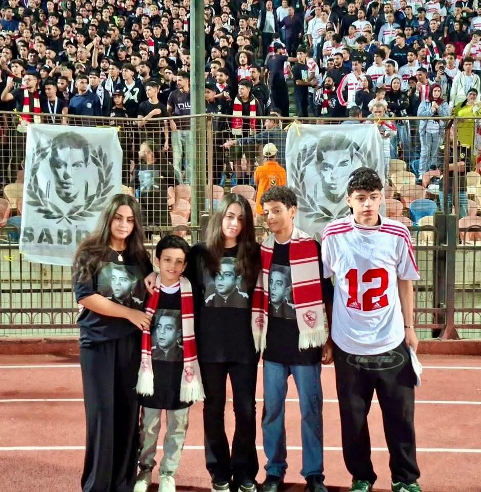 وفي لفتة إنسانية أثرت في الجميع، اصطحبت إدارة الزمالك أبناء النجم الراحل إلى أرض الملعب.