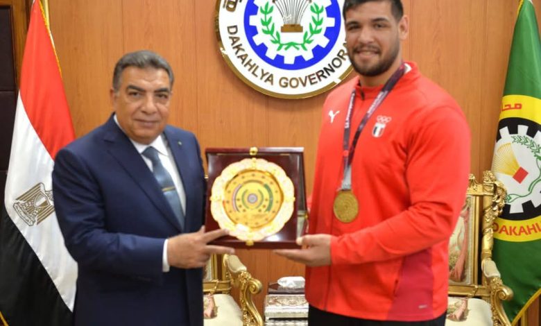 أهدى المحافظ للبطل درع المحافظة، تقديرًا لما حققه من إنجازات مشرفة رفعت اسم مصر عاليًا في المحافل الدولية. وشهد اللقاء حضور الدكتورة منى عثمان، وكيل وزارة الشباب والرياضة بالدقهلية، وعدد من القيادات الرياضية، وأعضاء من أسرة البطل.