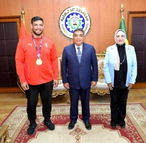 محافظ الدقهلية يكرم البطل العالمى عبد اللطيف منيع الفائز بذهبية إفريقيا للمصارعة الرومانية