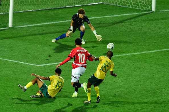 المباراة  على مدار شوطيها شهدت سيطرة وتفوقا وشراسة هجومية كبيرة من  منتخب جنوب أفريقيا.. وضاع منه هدفين محققين بعد أن تعاطف القائم مرتين لتسديدتين من لاعبيه نيابة عن عبدالمنعم تامر حارس الفراعنة.