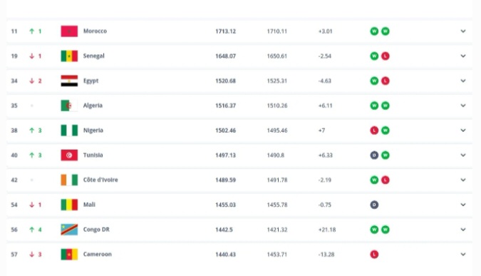 وبذلك احتل الفراعنة المركز 34 عالميًا مقابل 32 في آخر تصنيف، كما تراجعوا إلى المركز الثالث قاريًا بعد تصدر المغرب ووصافة السنغال.