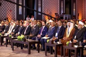 وأضاف: “إنّ انعقاد هذا المنتدى في هذه الظروف العالمية الدقيقة، يُعدّ رسالة قوية من عالمنا العربي، أننا شعوب محبةً للسلام وساعيةً لتحقيقه رغم انف الحاقدين والمعتدين، فلا شك أن ما يشهده الشعب الفلسطيني من معاناة مستمرة واعتداءات متكررة يمثل جرحاً غائراً في ضمير الإنسانية، ونحن في مصر ندين بشدة هذه الانتهاكات الصارخة للقانون الدولي وحقوق الإنسان، ونتضامن مع أشقائنا الفلسطينيين في نضالهم المشروع لاستعادة حقوقهم المشروعة وإقامة دولتهم المستقلة وعاصمتها القدس الشريف”.