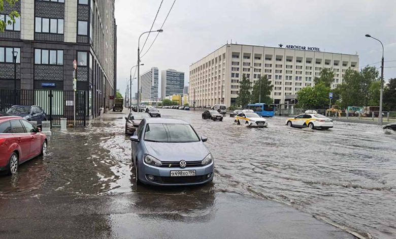 تعرضت موسكو وضواحيها منذ ساعات الصباح الباكر اليوم لأمطار غزيرة، تسببت في إغراق بعض الشوارع وأنفاق عبور المشاة.