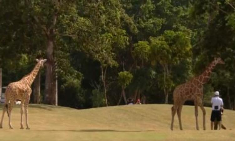 وبالقرب من أحد لاعبي الجولف ظهرت الزرافتان تتجولان بشكل طبيعي، لينتشر مقطع فيديو رصدته الكاميرات لعملية الاقتحام اللطيفة تلك.
