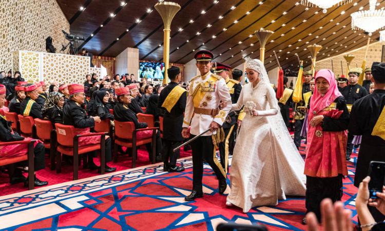 بلغت الاحتفالات الفخمة بزفاف الأمير عبد المتين ذروتها، اليوم الأحد، في سلطنة بروناي الدولة النفطية الصغيرة والغنية شمال بورنيو، بحفل دُعي إليه عدد من القادة والملوك.
