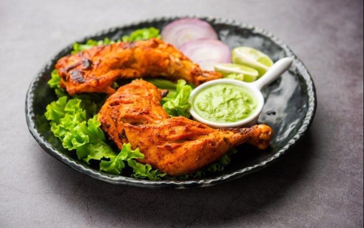ضعي الدجاج الهندي الأحمر في طبق التقديم، وقدميه ساخناً.