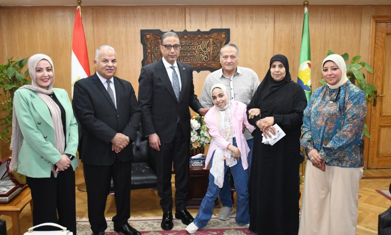 واستقبل المحافظ الطالبة “مي” برفقة أسرتها بمكتبه، معربًا عن سعادته بتفوقها وإصرارها على النجاح رغم التحديات، وقدم لها شهادة تقدير وميدالية تذكارية، إلى جانب مبلغ مالي مقدم من جمعية “بوابة معًا للخير”، التي أعلنت أيضًا تكفّلها الكامل بمصروفاتها الدراسية خلال المرحلة الجامعية.