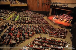 و امتلأت القاعه بأكملها من عشاق موسيقي خيرت ..بينما قام بعض الحضور بمنح خيرت باقات الزهور تعبيرا عن حبهم لهم مع بدايه الحفل.