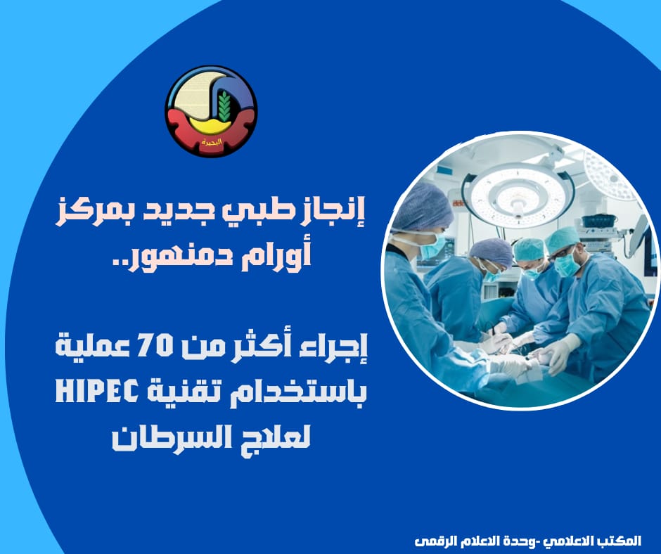 وفي هذا السياق، أشار الدكتور رجب شريف مدير مركز علاج الأورام بدمنهور، إلى أنه تم إجراء أكثر من 70 عملية باستخدام تقنية العلاج الكيميائي الحراري داخل البطن (HIPEC)، والتي تمثل نقلة نوعية في علاج بعض أنواع السرطان المتقدمة، خاصة أورام الغشاء البريتوني.