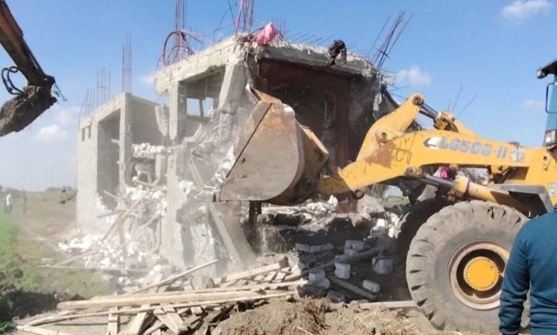 و إزالة دور أرضي مكتمل على مساحة ١٤٤ م² بعزبة محلبة التابعة للإصلاح الزراعي قبلي، و مبنى بالطوب الابيض علي مساحة 300 م بالصفاصيف و إزالة مبنى مسقوف بالخرسانة على مساحة 160 م بقرية قرطسا