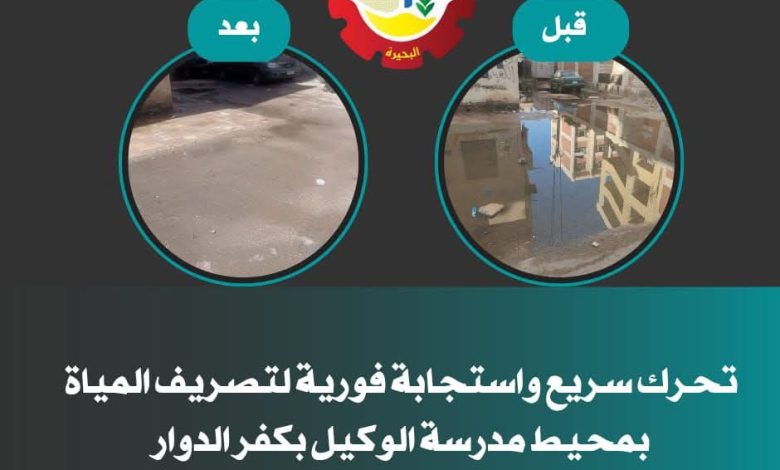 وفى إستجابة عاجلة لما تم رصده على مواقع التواصل الإجتماعي بشأن تراكم مياه الصرف الصحي بجوار مدرسة الوكيل بكفر الدوار..تواصل المكتب الإعلامي لمحافظة البحيرة على الفور مع الوحدة المحلية لمركز ومدينة كفر الدوار، حيث تم الدفع بفرق الصيانة المختصة، والإنتهاء من أعمال مراجعة الصفايات و تصريف المياة وإزالة أسباب الشكوى .