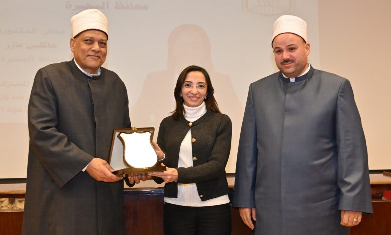 واختتم الحفل بتكريم عدد من الشخصيات الفاعلة، حيث تم تقديم درع منطقة البحيرة الأزهرية إلى الدكتورة جاكلين عازر، محافظ البحيرة.
