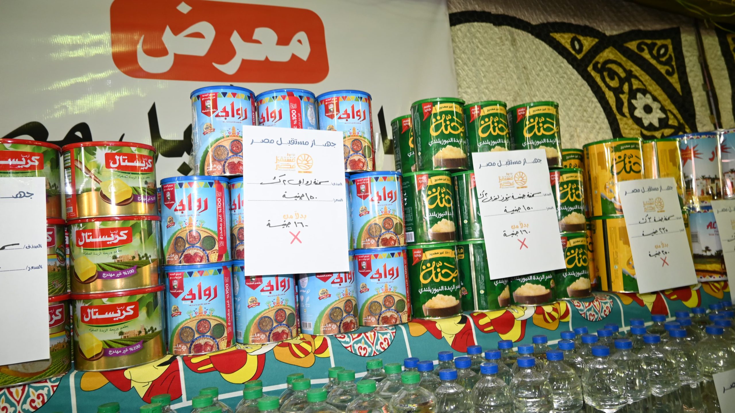 ويضم المعرض أكثر من 20 شركة عارضة تقدم مجموعة واسعة من السلع الأساسية والمواد الغذائية، وتشمل السكر، الزيت، الأرز، الدقيق واللحوم البلدية والمجمدة والدواجن والخضروات والفواكة، والياميش بأسعار تنافسية وتخفيضات تتراوح مابين 25 حتى 30%.