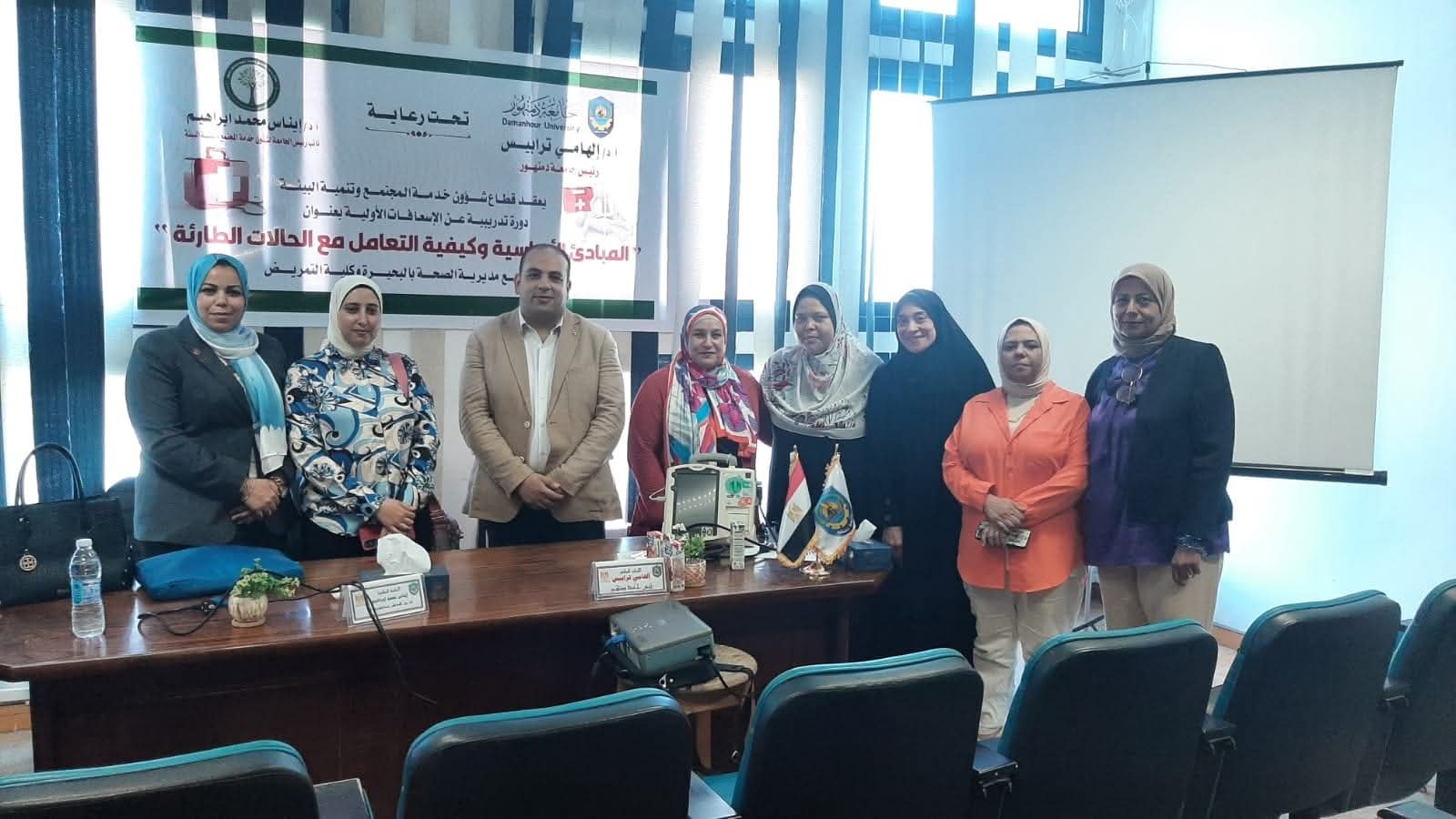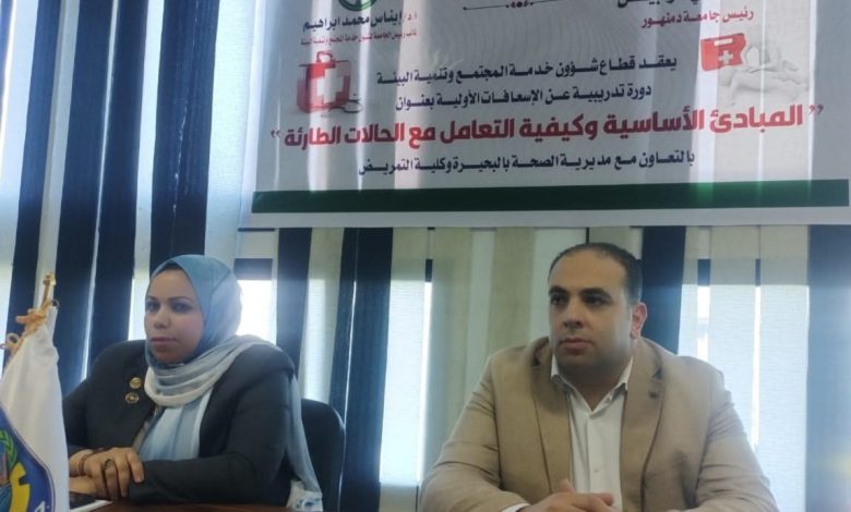 تنظيم دورة تدريبية عن الإسعافات الأولية بجامعة دمنهور بالتعاون مع مديرية الصحة بالبحيرة ، وذلك في إطار تكليفات الدكتورة جاكلين عازر محافظ البحيرة، بضرورة تعزيز التنسيق بين مختلف الجهات الرسمية لخدمة المجتمع، نظمت جامعة دمنهور دورة تدريبية عن الإسعافات الأولية بعنوان “المبادئ الأساسية وكيفية التعامل مع الحالات الطارئة”، وذلك بالتعاون مع مديرية الصحة بالبحيرة ممثلة في إدارتي التدريب والثقافة الصحية ويعرض