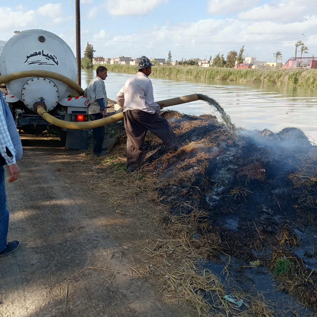 قرية رقم 6 بجوار محطات طلمبات إدكو للصرف: رفع 2 طن من المخلفات، وإطفاء حريق شب في المخلفات الصلبة بخط الجسر، مع تحرير محاضر للمتسببين بالحريق.