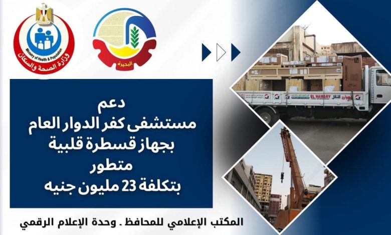 وقد قامت وزارة الصحة والسكان بدعم مستشفى كفر الدوار العام بجهاز قسطرة قلبية متطور من طراز Angiography System Advanced – موديل Azurion 7C12، وذلك بتكلفة إجمالية بلغت نحو 23 مليون جنيه.