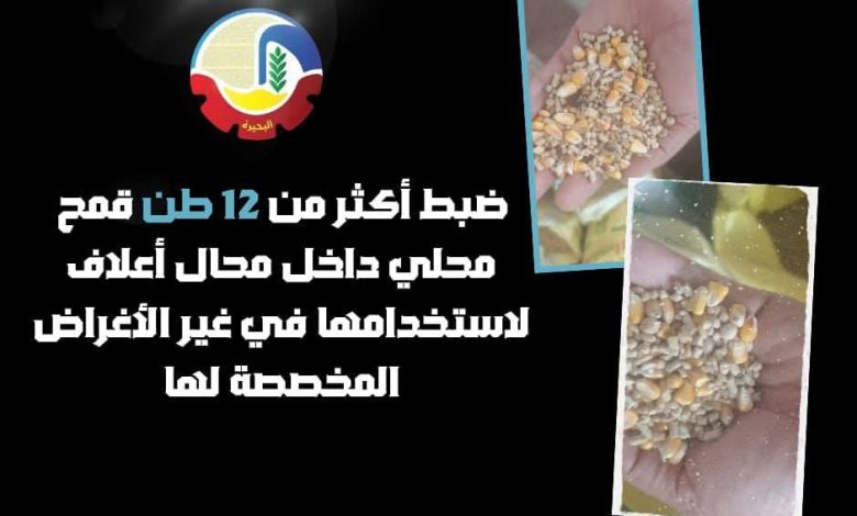 ٩٦٩٣ طناً من القمح المحلي موسم ٢٠٢٥، تم ضبطها داخل أحد محال الأعلاف بأبو المطامير والنوبارية.