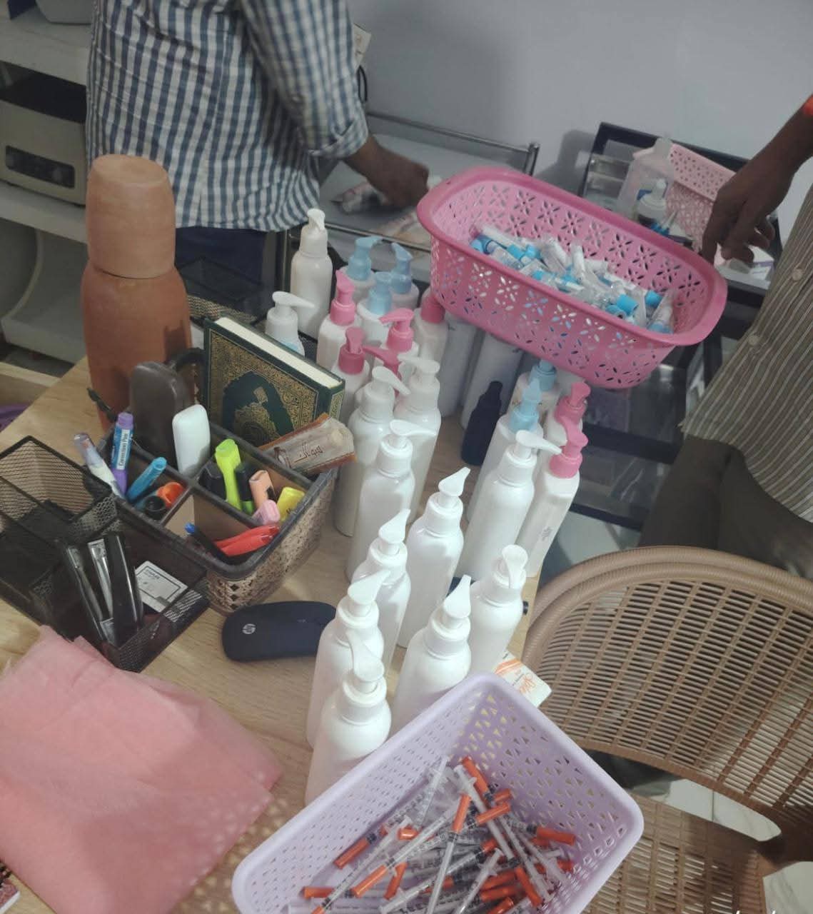 وقامت إدارة العلاج الحر بالمديرية بتعقب وضبط إحدى المراكز فور توافر معلومات بوجود تجهيزات طبية بداخله، حيث تم ضبط أجهزة جلدية، وتقديم خدمات طبية وعلاجية من توقيع كشف وعمل جلسات بشرة وشعر وحقن ووصف علاج مع عدم وجود الأطباء المؤهلين المختصين، وعليه تم اتخاذ الإجراءات القانونية والتشميع الفوري للمركز لتقديمه خدمات علاجية بدون ترخيص ،في وجود العمالة الغير مؤهلة لذلك.