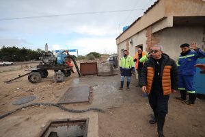 بالإضافة إلى تواجد رؤساء القطاعات ومديرو العموم على مدار الساعة لمتابعة سير العمل والتأكد من كفاءة شبكات الصرف الصحي والمطابق.