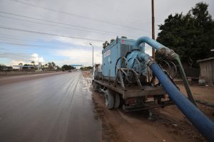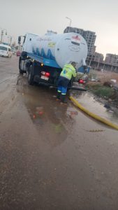 دفعت شركة الصرف الصحي بعدد من سيارات شفط المياه ومعدة في مختلف الأنحاء، خاصة في المناطق المعروفة بتجمعات المياه “الساخنة”، للشفط الفوري للمياه وتسهيل حركة المرور.