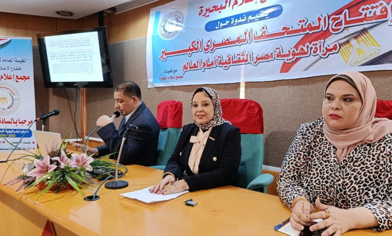 نظم مجمع إعلام البحيرة بالتعاون مع منطقة آثار البحيرة، ندوة بعنوان “المتحف المصري الكبير: مرآة لهوية مصر الثقافية أمام العالم”، إحتفاءً بهذا الحدث التاريخي الذي يجسد حضارة مصر العريقة أمام الإنسانية.