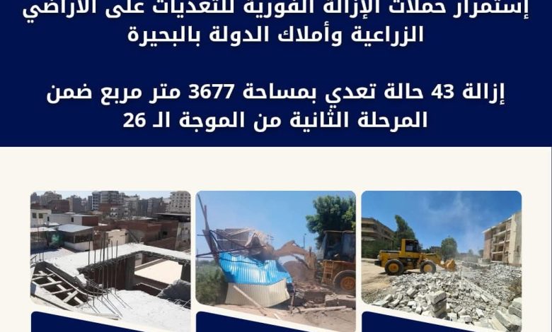 إزالة 43  تعد بمساحة 3677 متر مربع ضمن المرحلة الثانية من الموجة الـ 26
