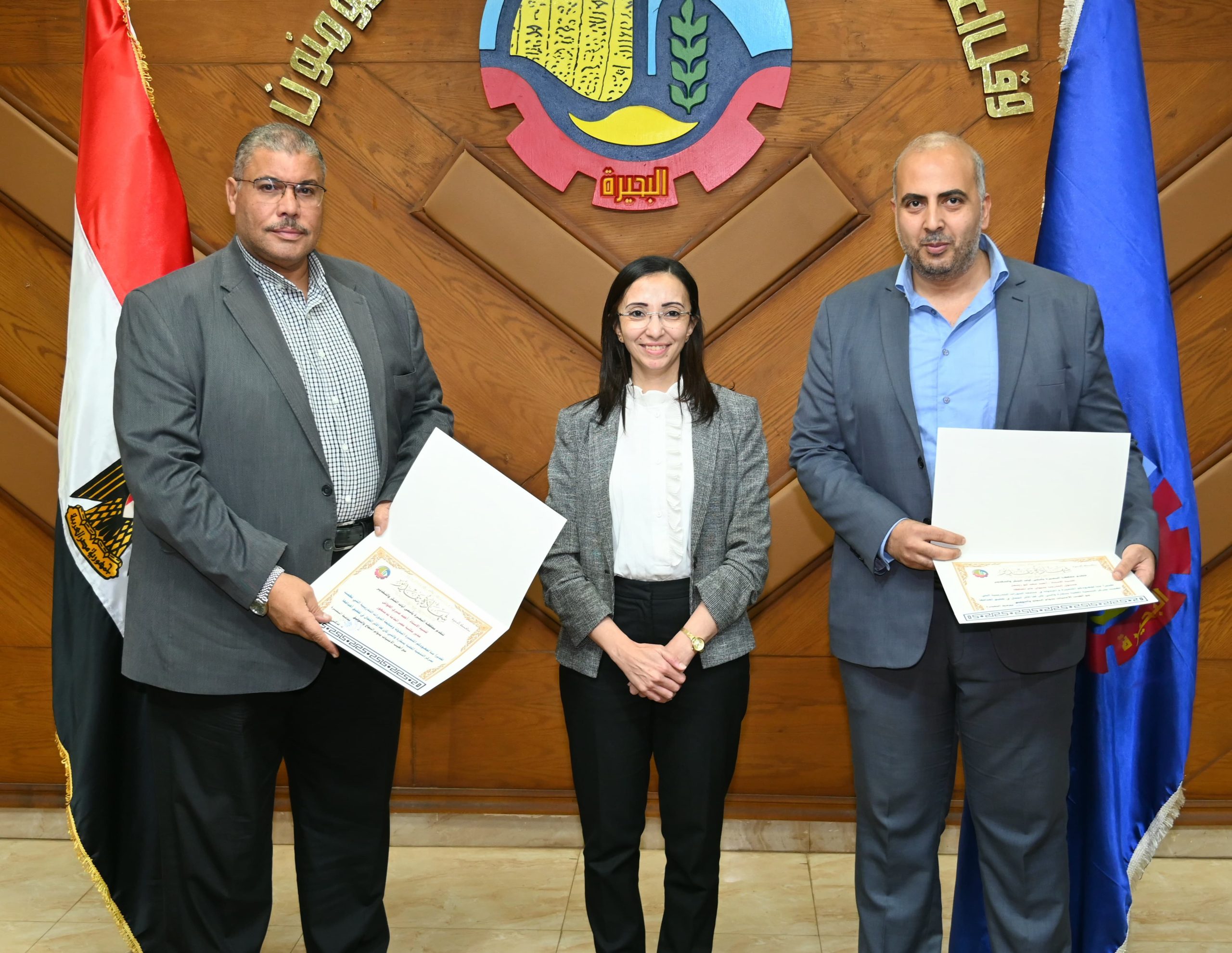 وكما كرمت المحافظ مدير مكتبة مصر العامة بدمنهور ومسئول التدريب بالمحافظة لجهودهما في متابعة الخطة التدريبية بسقارة.