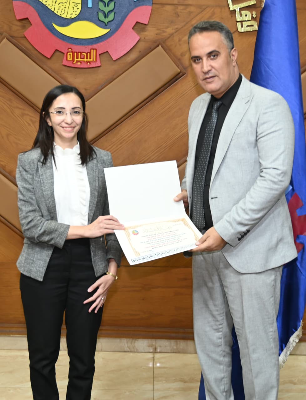 وكما كرمت المحافظ مدير مكتبة مصر العامة بدمنهور ومسئول التدريب بالمحافظة لجهودهما في متابعة الخطة التدريبية بسقارة.