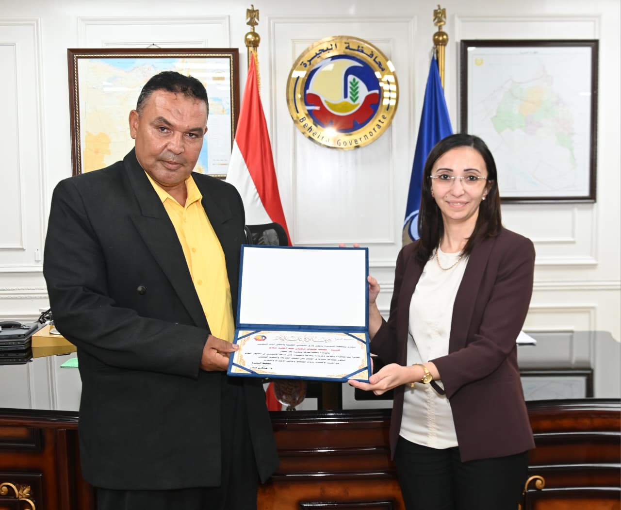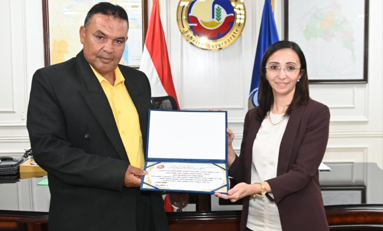 محافظ البحيرة تكرم عامل نظافة بعد حصوله علي الماجستير في القانون العام