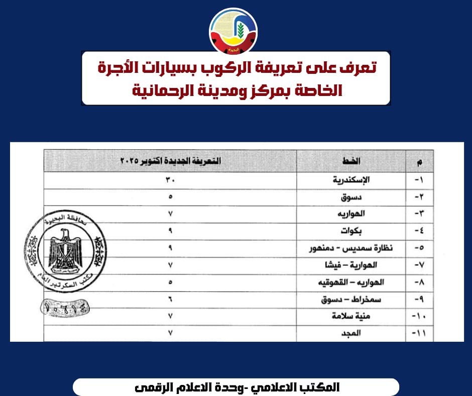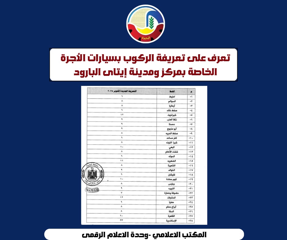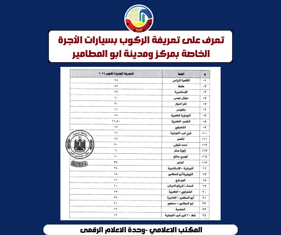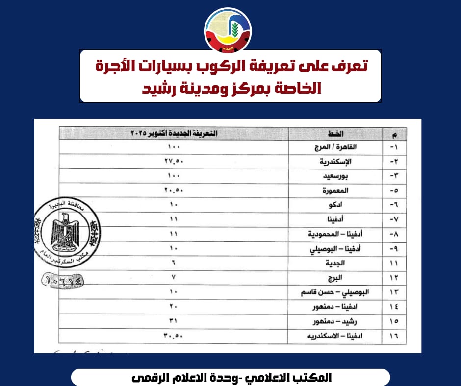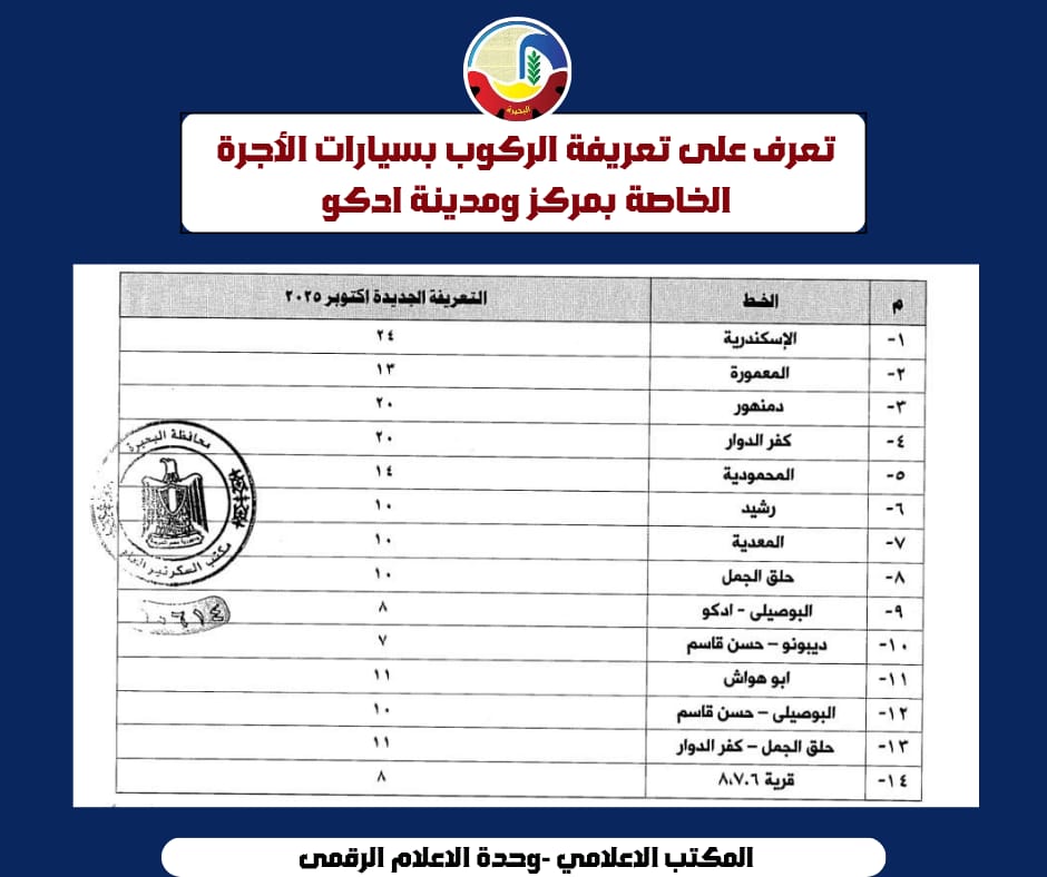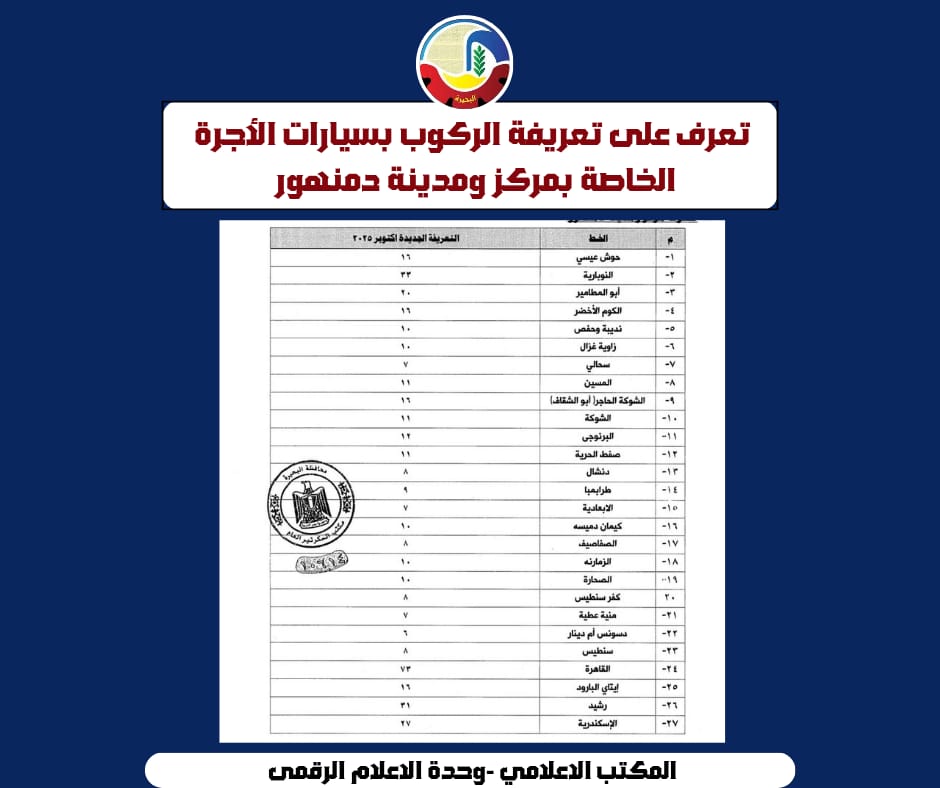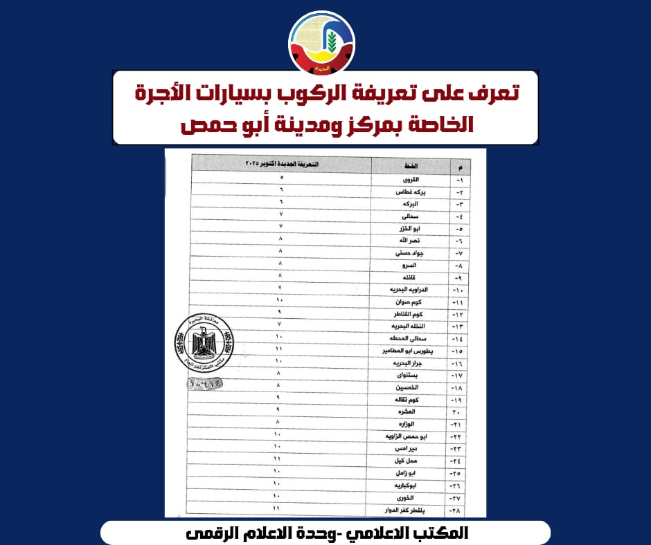 ننشر تعريفة الأجرة الجديدة لسيارات السرفيس والتاكسي والنقل العام في البحيرة