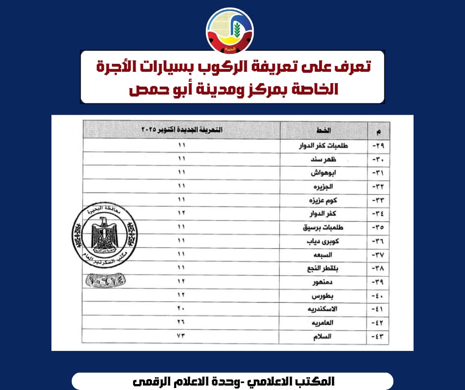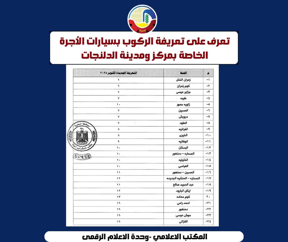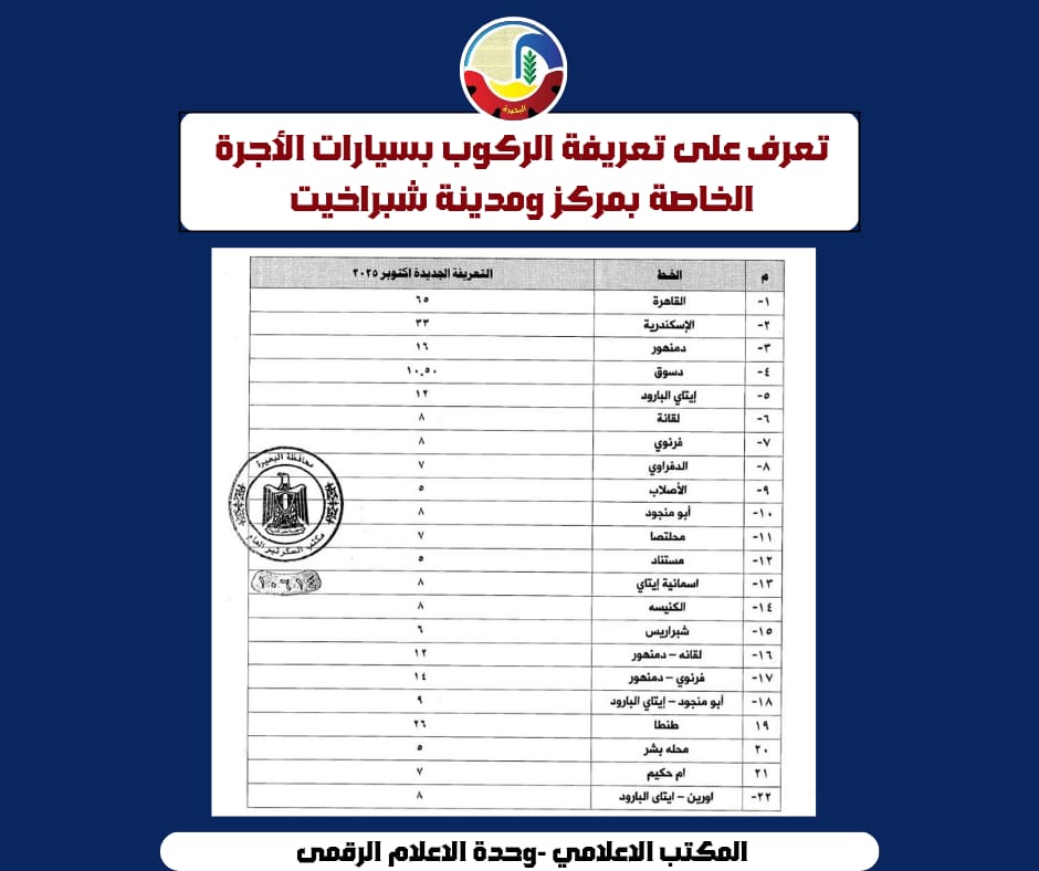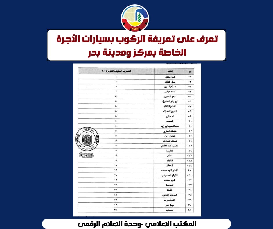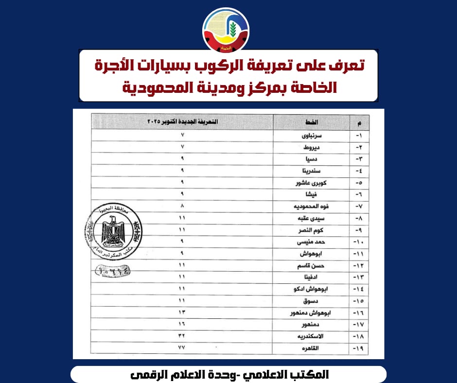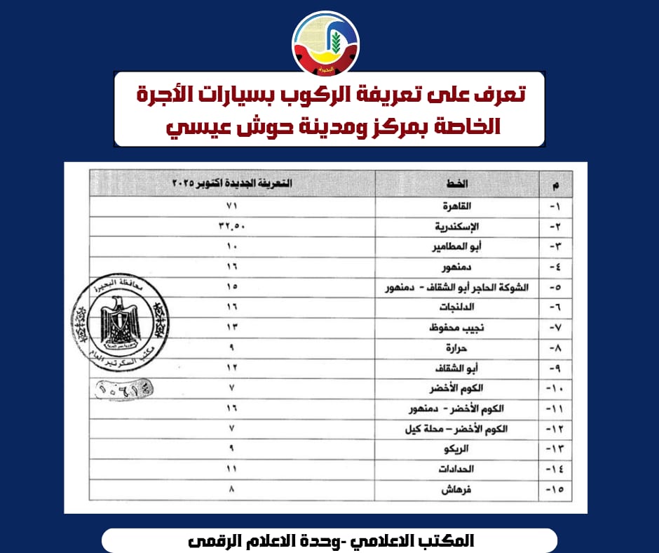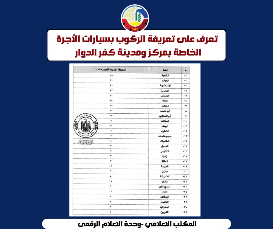ننشر تعريفة الأجرة الجديدة لسيارات السرفيس والتاكسي والنقل العام في البحيرة