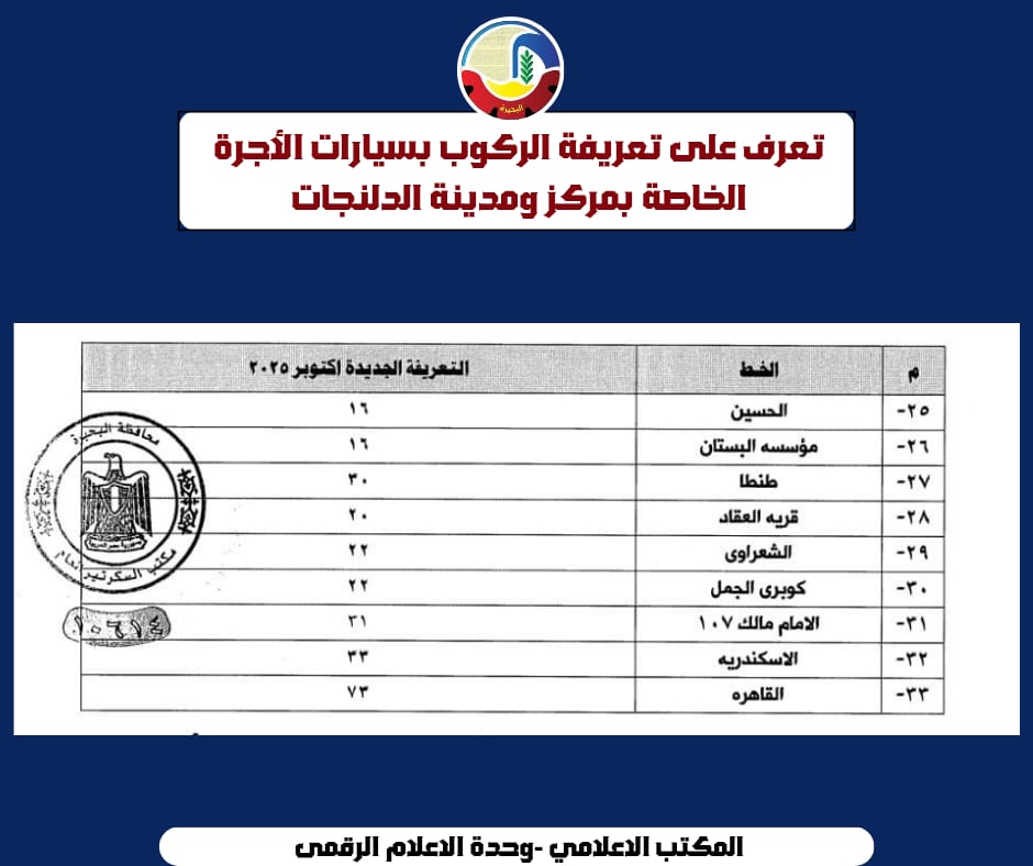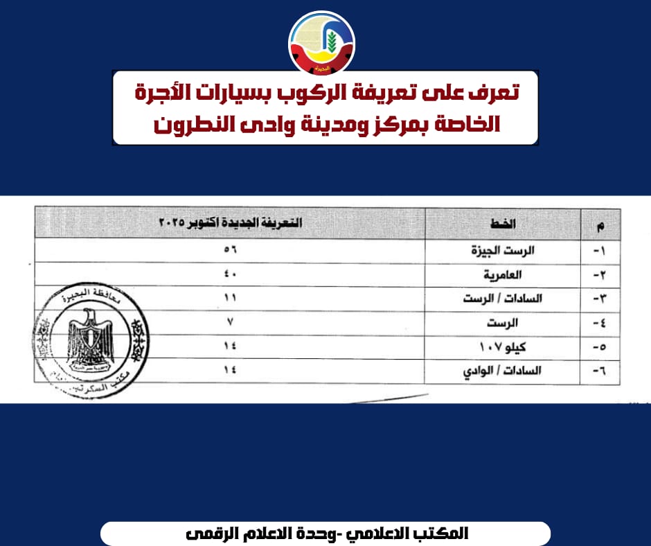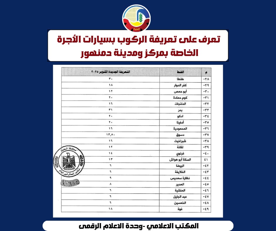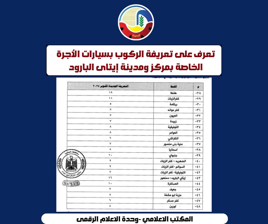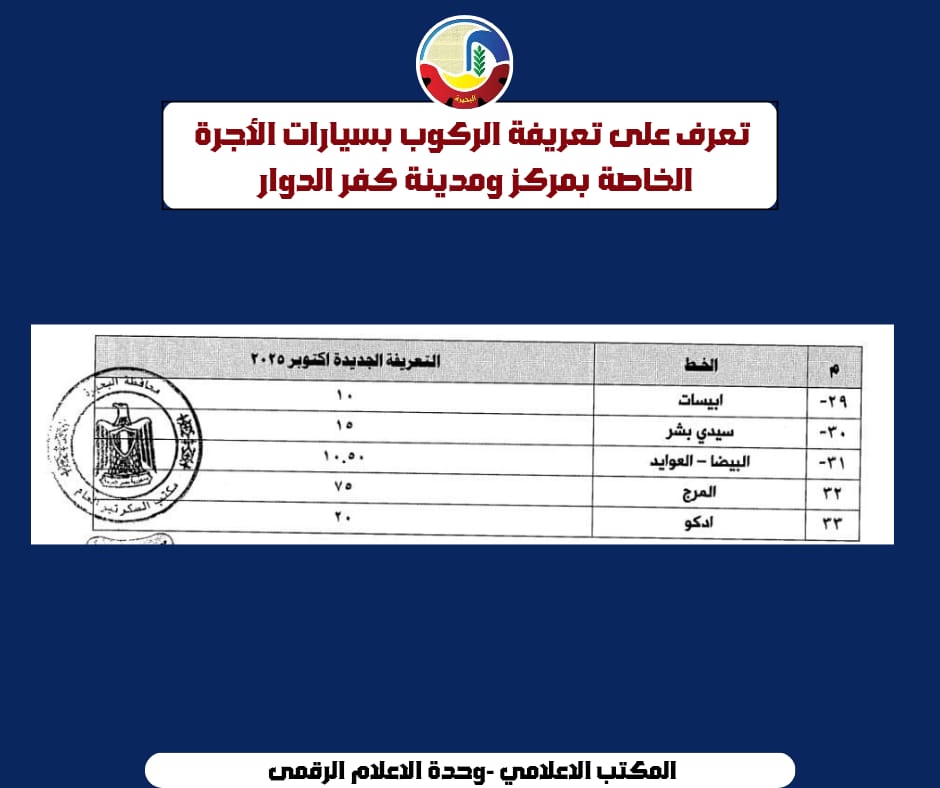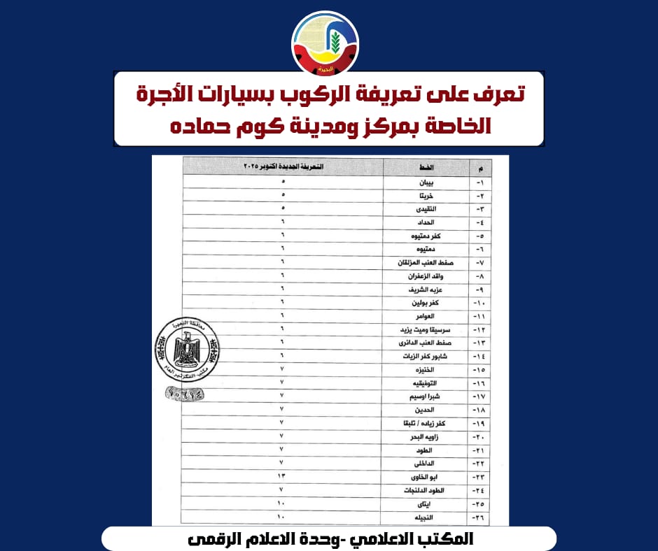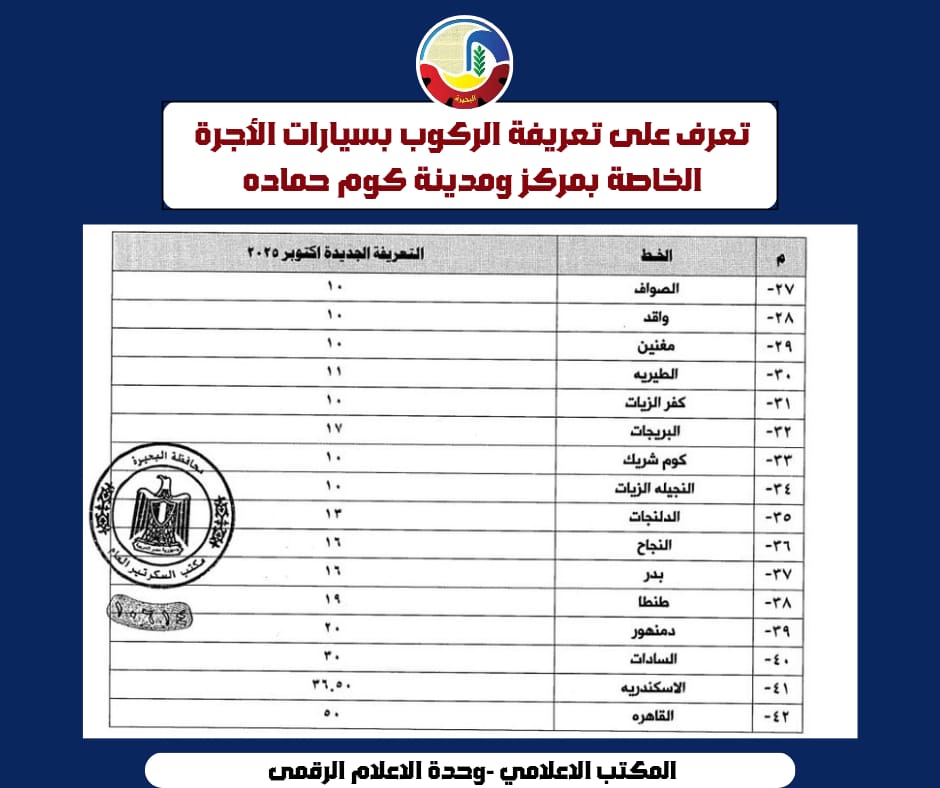 ننشر تعريفة الأجرة الجديدة لسيارات السرفيس والتاكسي والنقل العام في البحيرة