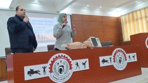 وتضمن برنامج اللقاء عدداً من الجلسات المتخصصة، أبرزها جلسة بعنوان «إدارة الأزمات والكوارث وكيفية مواجهتها والحد من مخاطرها»، أدارها الدكتور محمد حسن محمد علي، رئيس قسم تدريب الرياضات المائية بكلية التربية الرياضية بنين بالإسكندرية، إلى جانب ورشة عمل حول الإسعافات الأولية قدمها الدكتور محمد السيد عبد السلام، طبيب بمديرية الصحة بالبحيرة.