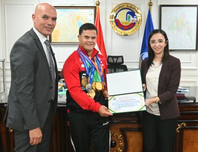 30 أكتوبر  محافظ البحيرة تُكرم أبطال العالم لألعاب القوى لذوي الإعاقة الذهنية بأسترالياكرّمت الدكتورة جاكلين عازر، محافظ البحيرة، أبطال العالم من أبناء المحافظة المشاركين في بطولة العالم لألعاب القوى لذوي الإعاقة الذهنية، والتي أُقيمت بدولة أستراليا خلال الفترة من 6 إلى 16 أكتوبر الجاري، تقديرًا لما حققوه من نتائج متميزة رفعوا بها اسم مصر عاليًا في المحافل الدولية. حيث تمكن اللاعب سيف أحمد علي بدر، من أبناء قرية دربك بمركز شبراخيت من… أكمل القراءة »