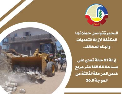 إزالة 51حالة تعد على مساحة 14544 متر مربع بالبحيرة