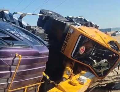 إصابة 3 أشخاص في حادث انقلاب سيارة محمّلة بونش في المنوفية